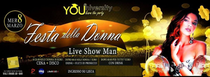 Mercoledì 8 Marzo seguendo una Tradizione YOUniversity che dura ormai da 5 anni...Organizziamo il Party in onore delle Donne più grande e più bello della Città!
